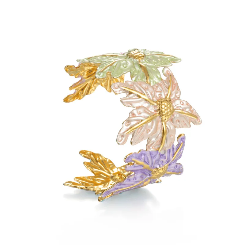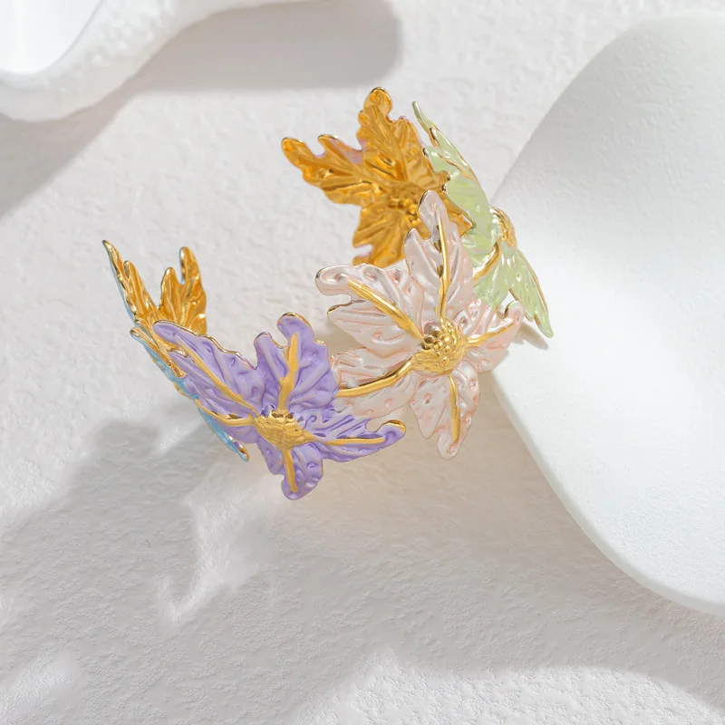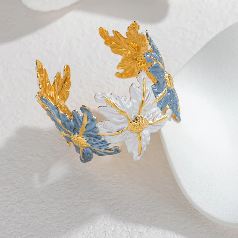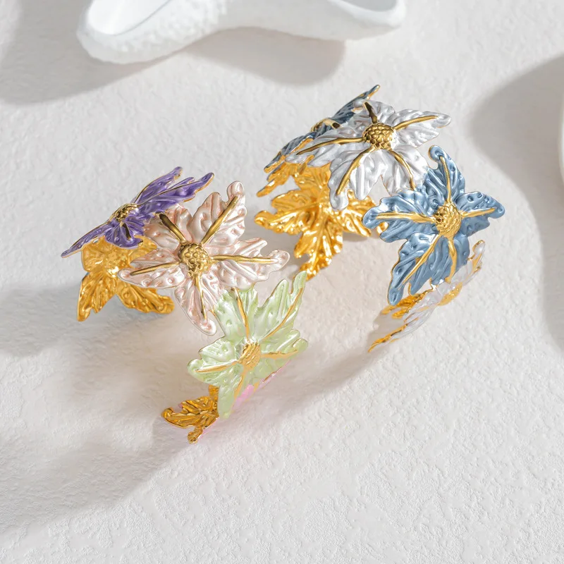 New Chinese Style Oversized Flower Cuff Bracelet 18K Gold Plated Stainless Steel Open Bangle Ins Light Luxury Office Jewelry